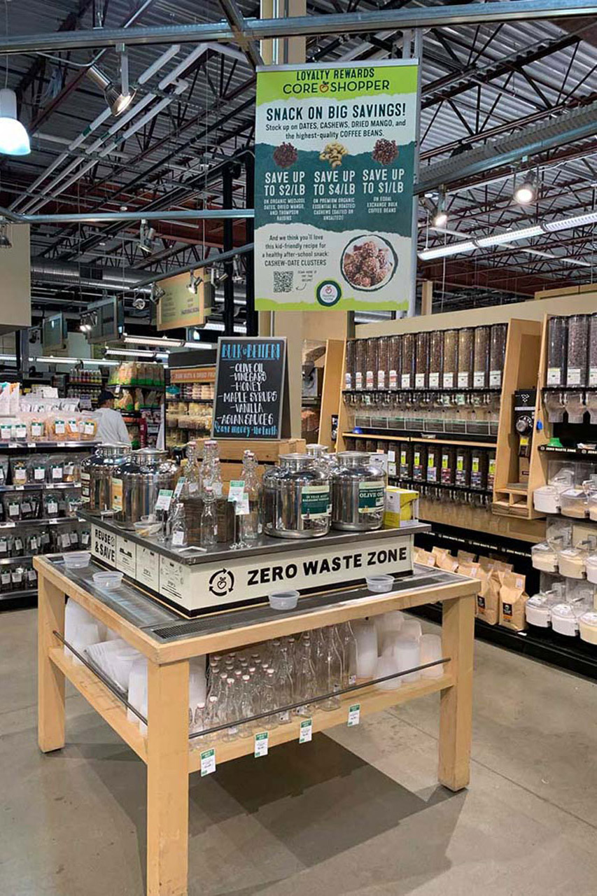Here are environmental displays with infographic posters and specific deal and product signage at all three Healthy Living stores.